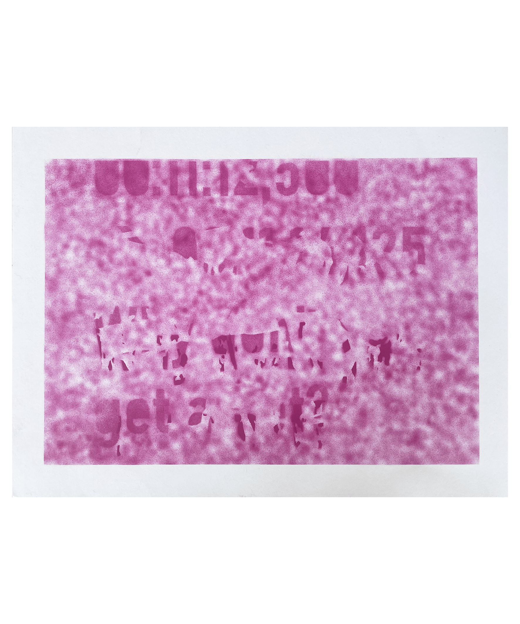 "These studies were made using images of fellow artist Corey Black's sculptures in anticipation of a collaborative exhibition later this year. The patterns and contours of his works were zoomed in on, rotated, and "scanned" in order to transcribe certain motifs of casting, welding and "bruising" to flat painting. Segments of text, both found and invented, were then partially superimposed on the images. My interest in language and its means of presentation regularly morphs as I subject written phrases to varying patterns and motifs inspired by Corey's work. The studies mark a certain point in the formation of a "mutual grammar" as Corey and I continue to collaborate."